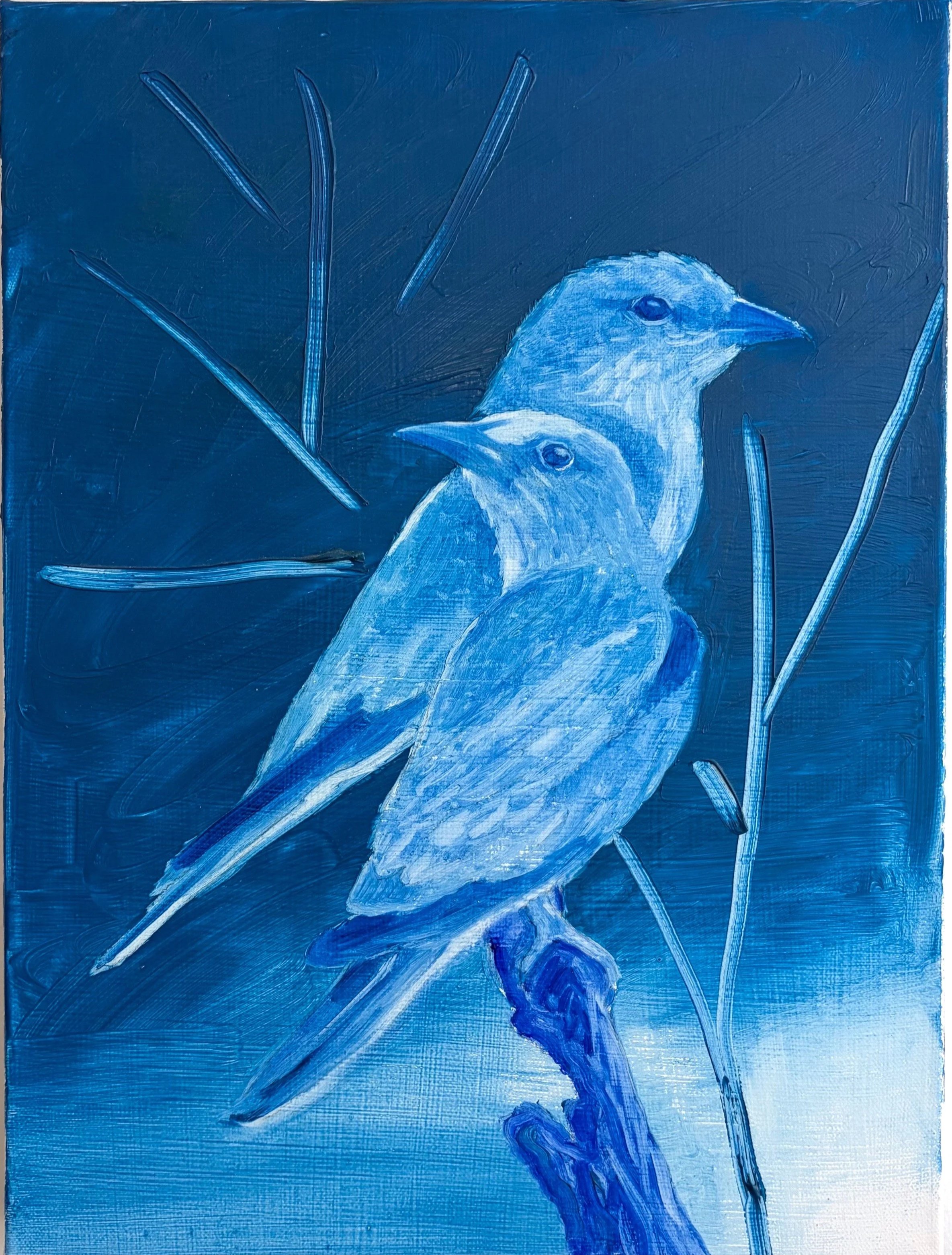 The Hudson River and surrounding wildlife are often featured in her work. Her process involves bringing the experience of being in nature back to her studio through memory and sketches. Reinterpreting specific locations back in the studio leads to formal discoveries in mark making and color.
